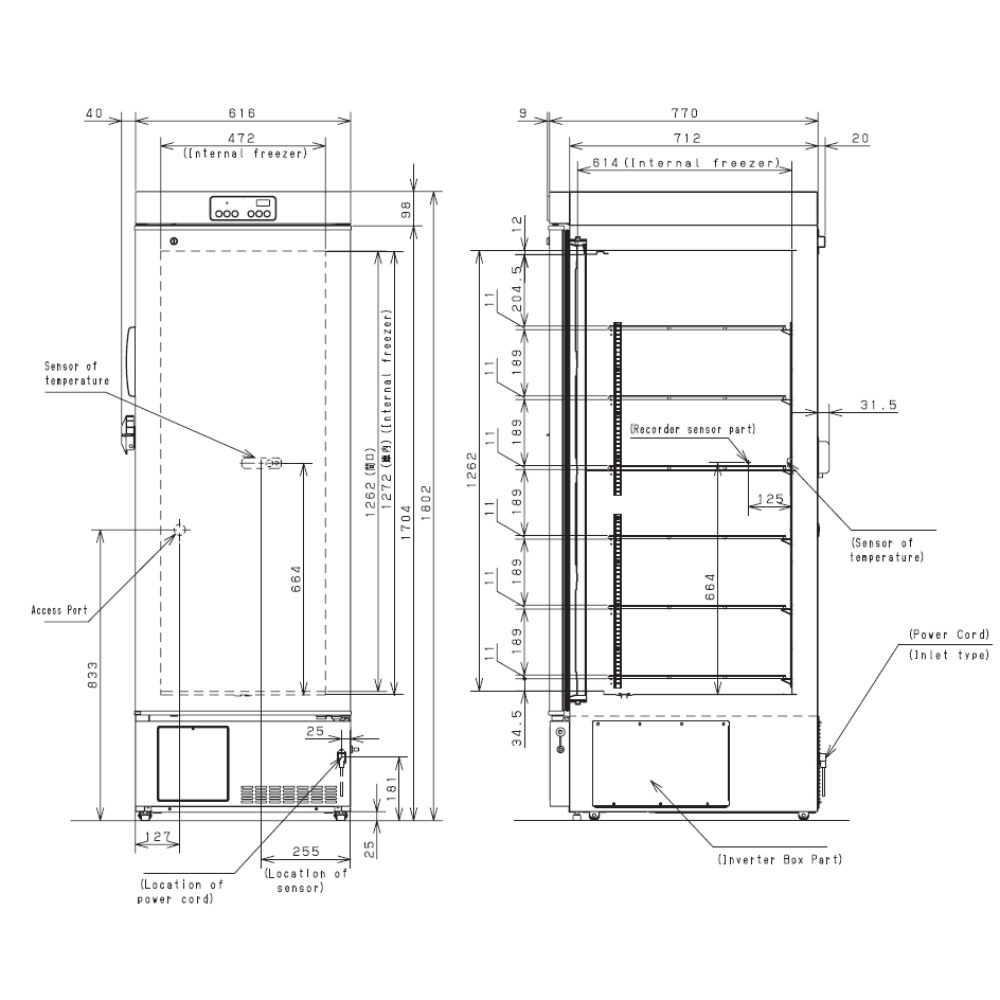 External Dimensions (W x D x H) 616 x 770 x 1802 mm