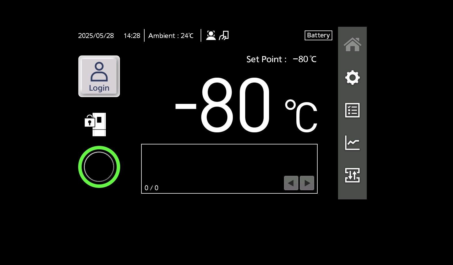 An eye level, door mounted, 10.1 inches high resolution LCD touchscreen allows full user control. A USB port makes transferring logged data to a PC convenient. All performance attributes are displayed and an internal temperature log can be expressed in graphic form over time.