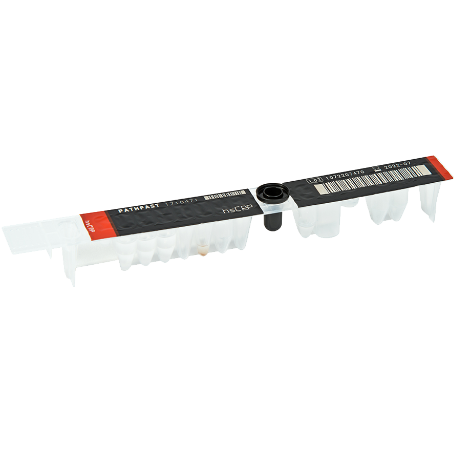 PATHFAST™ hsCRP è un prodotto per uso diagnostico in vitro con il sistema diagnostico in-vitro PATHFAST™ per la misurazione quantitativa della proteina C reattiva (CRP) nel siero umano, nel sangue intero o nel plasma con eparina o EDTA, anche a basse concentrazioni. La proteina C reattiva (CRP) è una globulina di fase acuta con una massa molecolare di circa 118.000 dalton. La CRP è altamente conservativa, composta da cinque sottounità cicliche globulari identiche, ed è classificata come un membro della super-famiglia di proteine delle pentrassine. Poiché valori elevati di CRP sono sempre associati a variazioni patologiche, il dosaggio della CRP fornisce informazioni utili per la diagnosi, la terapia e il monitoraggio delle condizioni infiammatorie e delle patologie correlate. PATHFAST™ hsCRP è un saggio per la misurazione della CRP, anche a basse concentrazioni, con la modalità di un saggio immunoenzimatico in chemiluminescenza (CLEIA). Tutti i componenti necessari per l’esecuzione del test sono confezionati in un’unica cartuccia di reagente. Caricando PATHFAST™ hsCRP nel sistema diagnostico in vitro PATHFAST™, la CRP può essere quantificata con precisione entro 17 minuti.