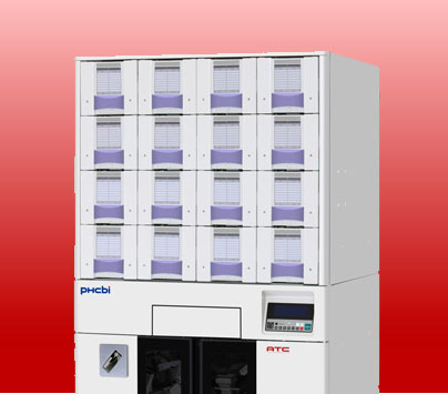 錠剤ハサミを使う“ハンドカット” は、1錠剤あたりの作業時間が約4.7秒*かかるといわれています。PHCbiのATCは、自動半錠カット機能を装備した「自動半錠分割TC棚」をオプション設定。独自のカット機構で、半錠カット専用機では実現でいないハンドカットに近い分割精度を実現。今お使いのPHCbi製錠剤包装機に追加することも可能です。