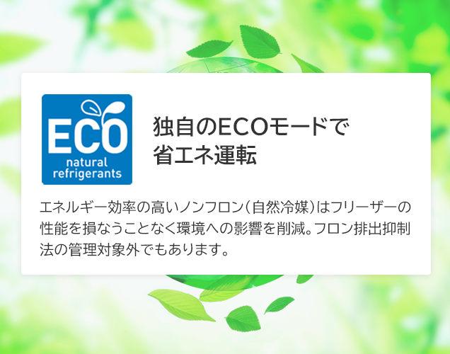 環境への負荷を最小限に抑えるため自然冷媒が使用されており、ワクチン、薬品、薬剤の保存にも