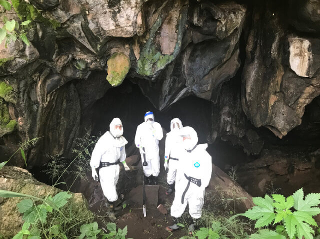 ザンビア、コウモリのいる洞窟での調査