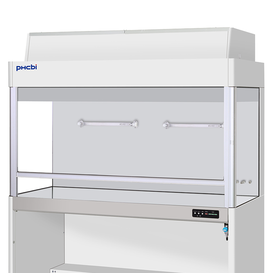 HEPAフィルターやファンモーターを本体上部に設置した、薄型設計のコンパクトボディーです。足元が広く使え、無理のない姿勢で操作できます。しかも、ワークエリアは幅・奥行・高さを充分に取ったワイドな空間で、限られたスペースで多様な実験ニーズに対応できる効率設計です。