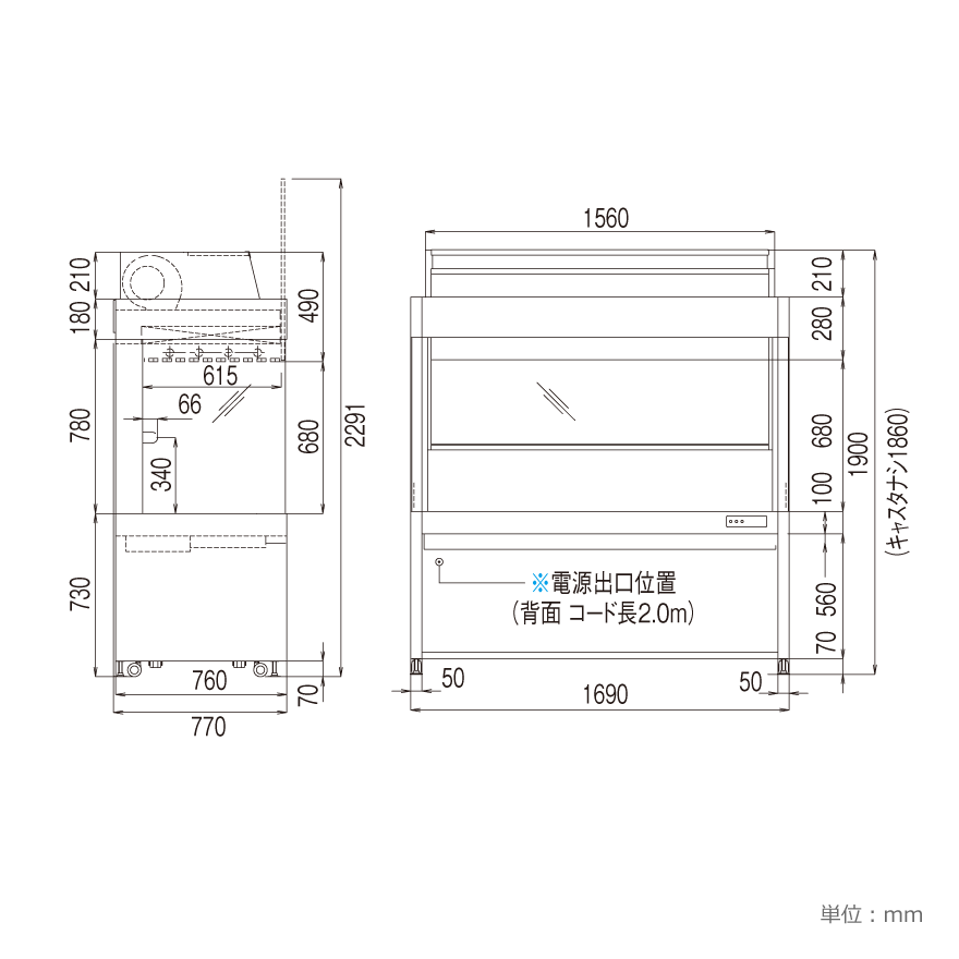 ワークエリア寸法 W1660 × D610 × H680 mm
