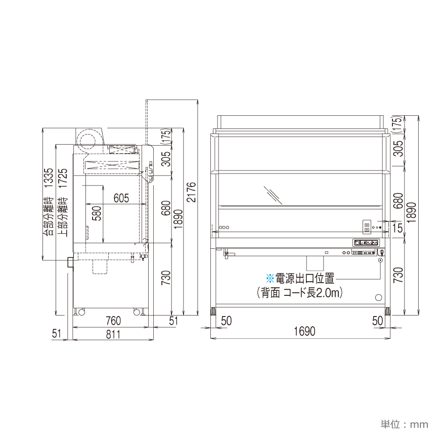 分解寸法 W1690 × D764 × H1335 mm