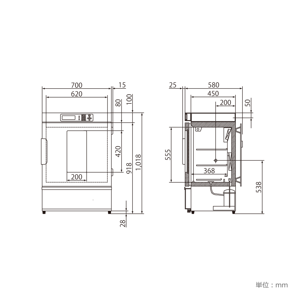 測定孔 1 ヵ所 庫内左側面(Φ40 mm)