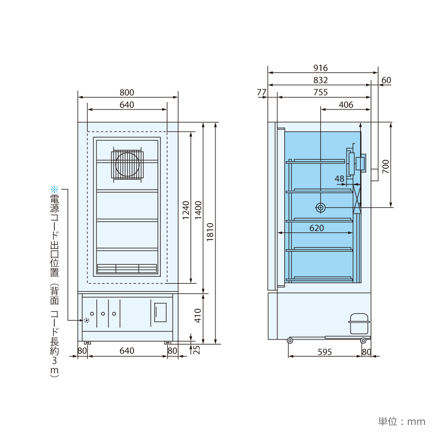 ※ 上記寸法は取手等の突起物を含みません。搬入時の必要寸法については寸法図をご参照ください。