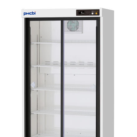ガラス扉の前にあるスリットから吹き出る機械室の放熱利用と、アルゴンガスを充填した強化ガラスにより、ガラス表面の結露を低減しています。