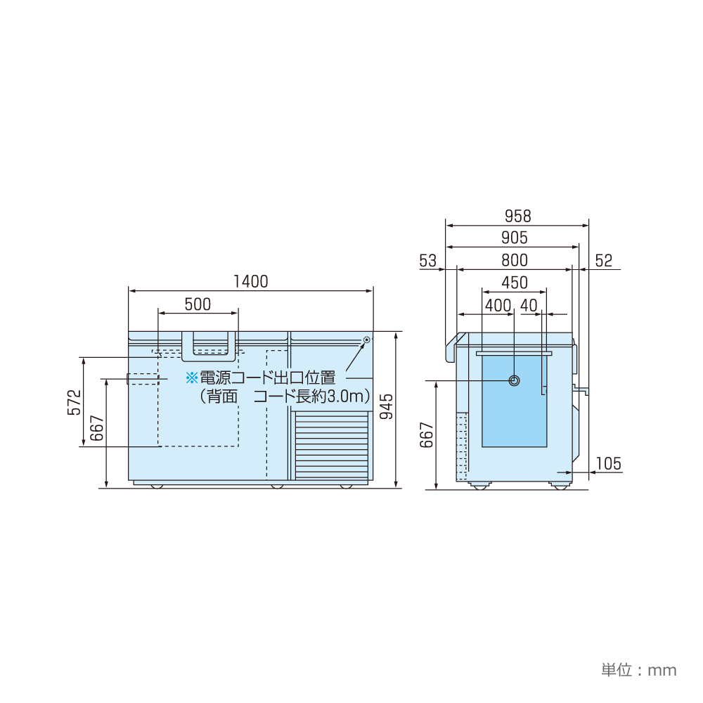 ※ 上記寸法は取手等の突起物を含みません。搬入時の必要寸法については寸法図をご参照ください。