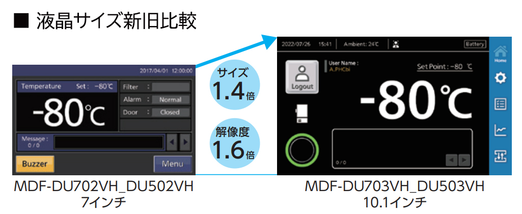 ※:室温23℃、設定-80℃、MDF-DU503VHS1(100V/60Hz)の実測値