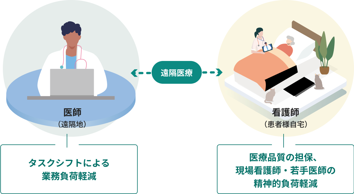 Teladoc HEALTHを使用し、医師から看護師等の医療従事者へタスクシフト/シェアを実施。