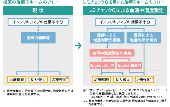 レミチェックQを使用することによって、有効血中濃度による判定という客観的な指標を治療判断に加えることができます。