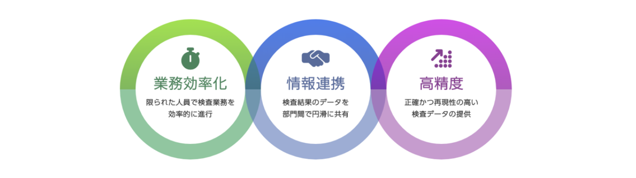 PHCは、検体検査機器・試薬、病理検査機器、保存機器を組み合わせ、検査室全体を包括的にサポートします。検査の業務フローに沿った機器配置と連携により、業務効率化・情報連携・高精度を実現し、検査技師が本来の専門性を発揮できる環境を提供します。