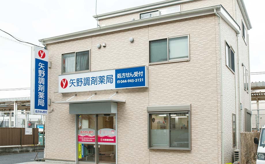 東京のベッドタウンとしてJRをはじめ多くの私鉄も乗り入れ、人口が増え続ける神奈川県川崎市。矢野調剤薬局川崎店は、川崎市を南北に走るJR南武線の稲田堤駅から徒歩約5分の場所にあります。