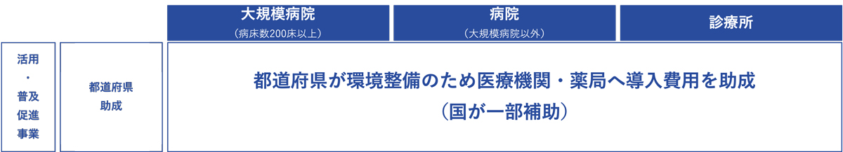 令和7年9月までに電子処方箋を導入した施設を補助対象として、都道府県が環境整備のため医療機関・薬局への導入費用を助成(国が一部補助)します。