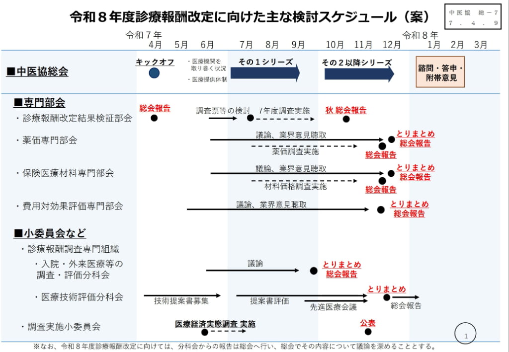 出典:厚生労働省「令和8年度診療報酬改定に向けた主な検討スケジュール(案)」