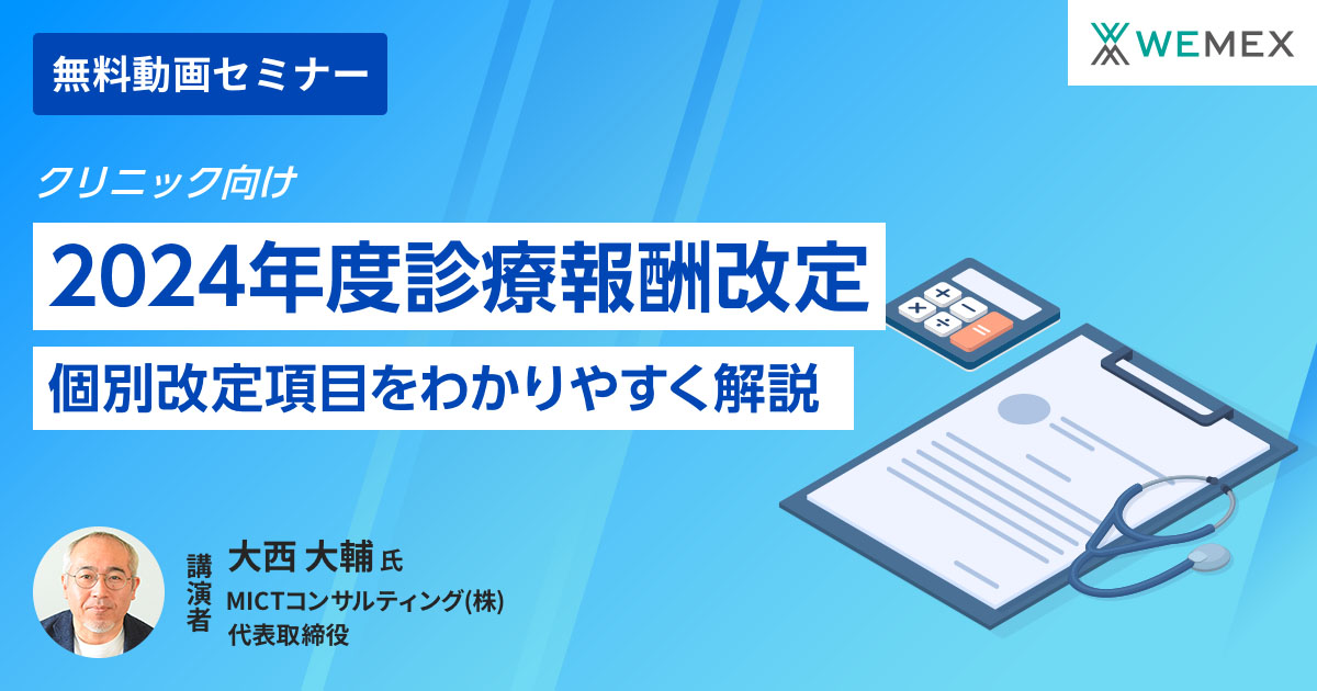 2024年度診療報酬改定に関連した内容のセミナーを以下にまとめています。上記の内容と合わせてご参照ください。