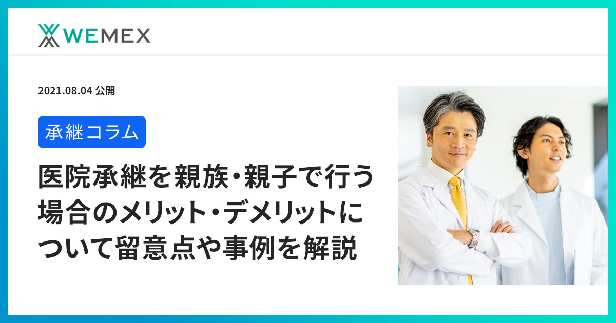 医院承継を親族・親子で行う場合のメリット・デメリットについて留意点や事例を解説