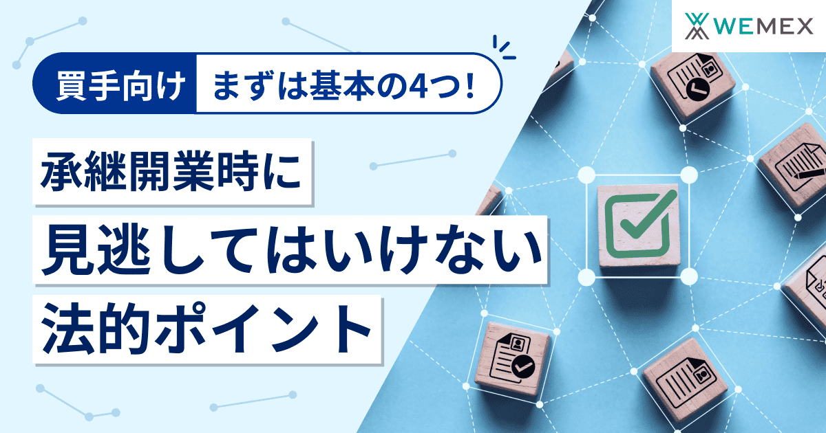 【買手向け】まずは基本の4つ!承継開業時に見逃してはいけない法的ポイント