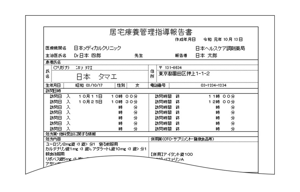 在宅患者訪問薬剤管理指導に必要な、在宅特有の情報を記録・管理することができます。