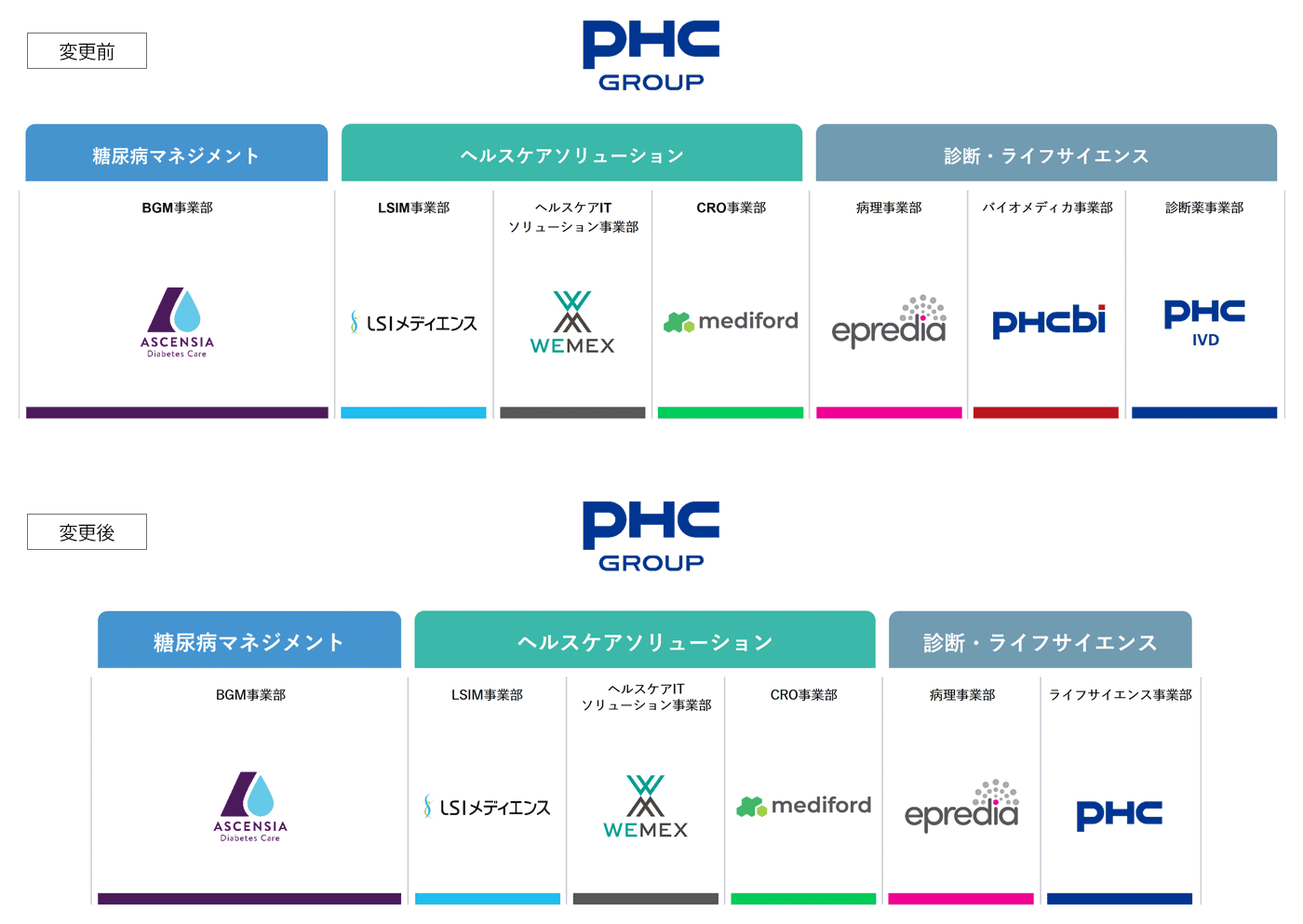 PHCbiは、製品ブランドとして継続します。