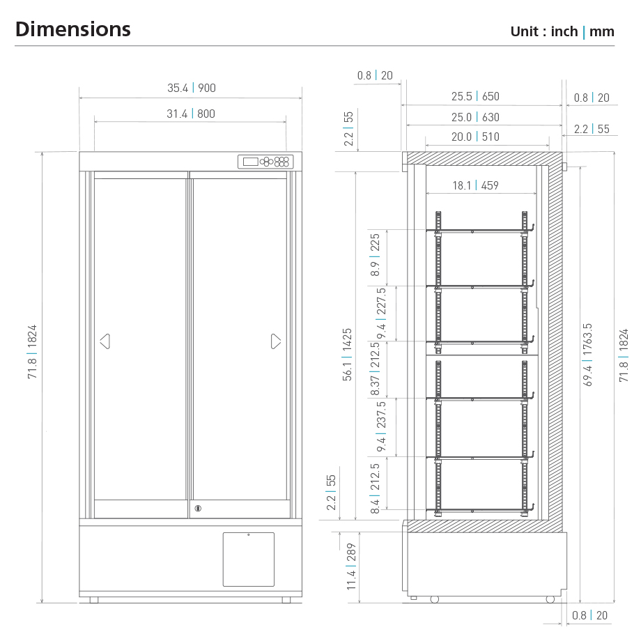 An ergonomic design and flexible shelf layout provide a clear view of stored materials with easy product access through the large, space-saving sliding glass door, designed to increase energy efficiency and protect stored materials from ambient temperatures. The insulated, dual-pane thermal glass doors are filled with argon gas to minimize heat transfer. Airflow across the surface of the door reduces condensation.