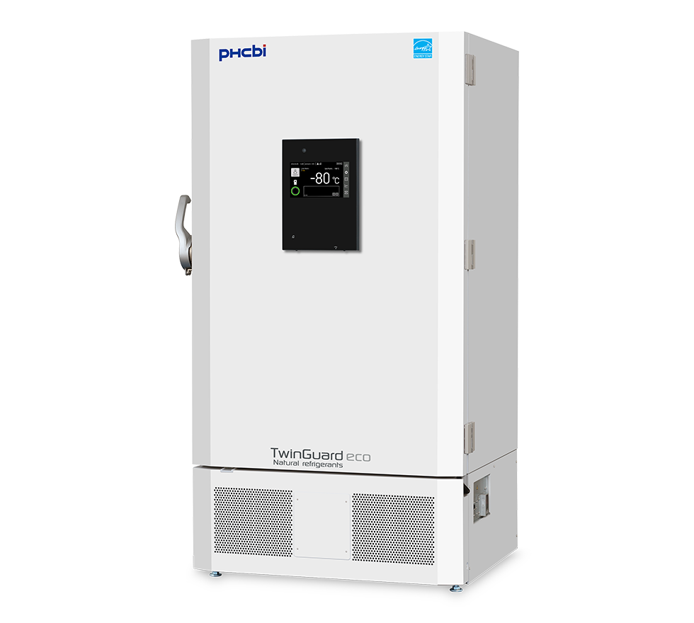The PHCbi TwinGuard ECO dual-voltage freezer delivers next-generation sample protection with dual cooling security, eco-friendly refrigerants, and inverter-driven efficiency. Designed for reliability in critical environments, it maintains performance down to -86°C while reducing energy use by more than 50%.* A modern touchscreen interface and integrated access control make it a smarter, greener solution for safeguarding high-value biological materials.